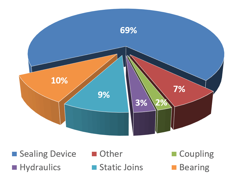 泵出現(xiàn)故障的原因有很多,但如下圖所示,超過三分之二的故障與密封裝置問題有關(guān)。隨著節(jié)約用水和減少需要處理的廢液數(shù)量的運(yùn)動(dòng),該行業(yè)越來越依賴機(jī)械密封。隨著安裝人口的增長,直接由機(jī)械密封引起的泵故障的百分比也在增加。