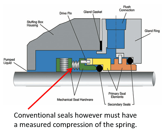 所有密封件都有某種類型的彈簧機(jī)構(gòu)來提供密封面的初始?jí)嚎s,通常稱為預(yù)緊力。集裝式密封件具有內(nèi)置預(yù)緊力,僅需要安裝人員在啟動(dòng)前移除固定片。