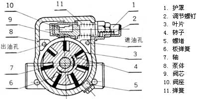 當油槍橡膠關(guān)閉,電機仍驅(qū)動葉片泵工作時,葉片泵內(nèi)油壓將會隨之升高,為防止機件損壞,一旦油壓超過額定壓力時,泵內(nèi)溢流閥自動工作,泵內(nèi)腔油液自行經(jīng)葉片泵進口孔進油管流回油池(或油箱)內(nèi)。